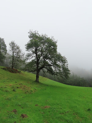 It wasn't too wet to begin with though as we walked up the hill into the woods we hit the cloud level. The rain became a lot heavier after that. Hence not so many photos as I put my camera away in my backpack. On went my waterproof over trousers as well as I opted to be a little too hot rather than completely soaked.